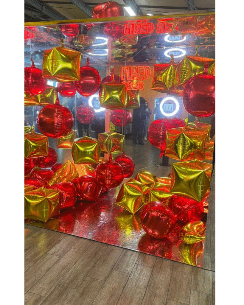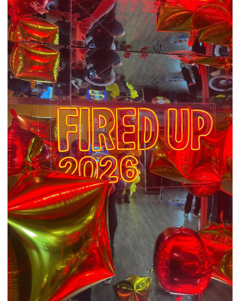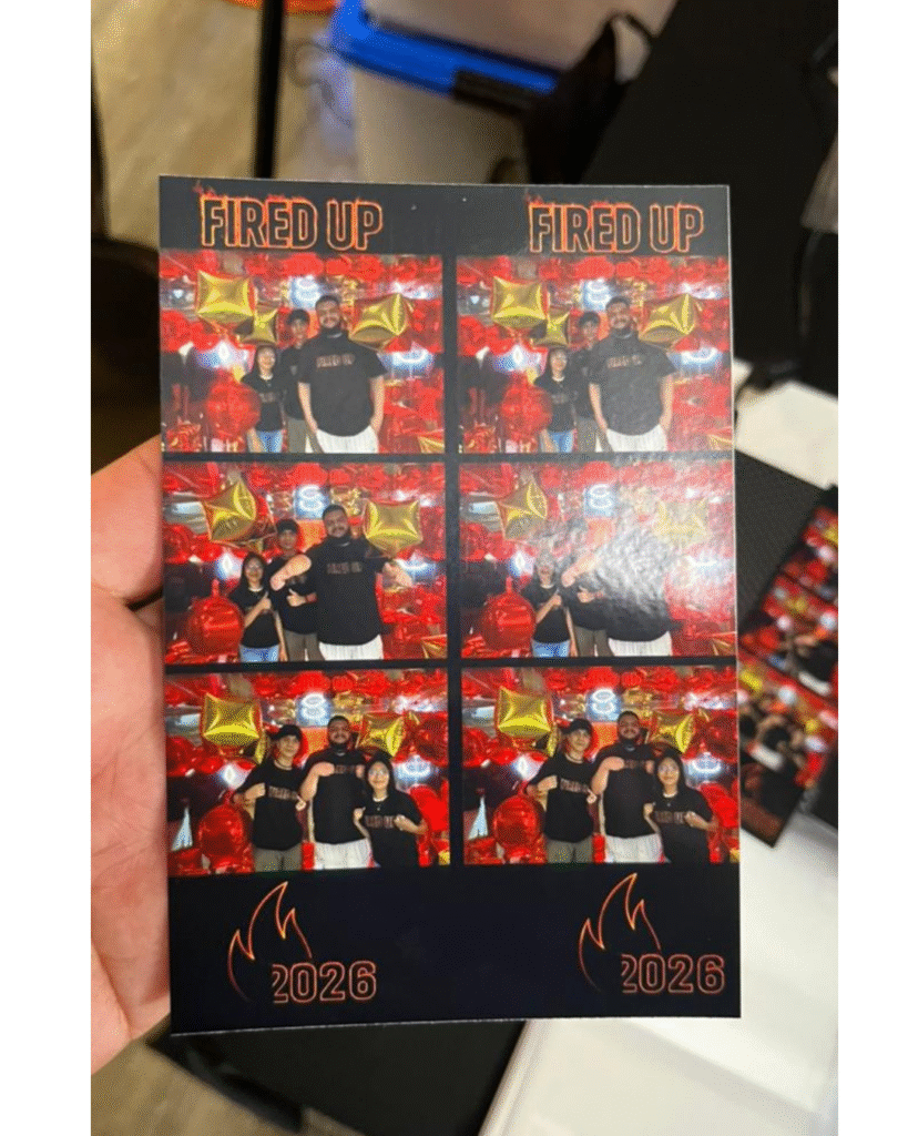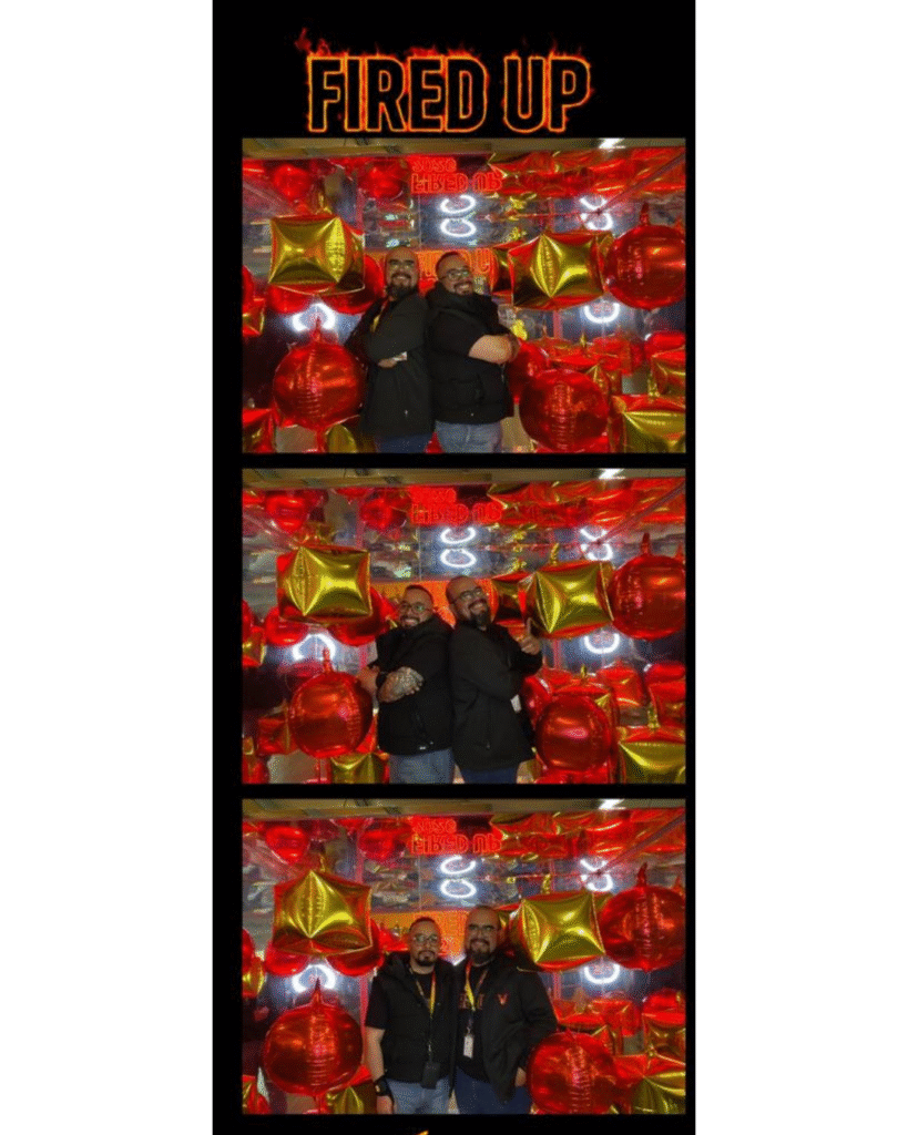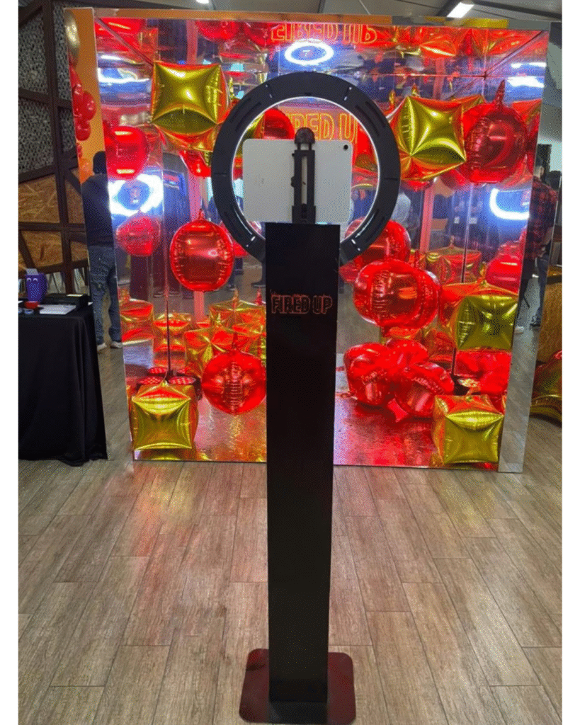 Para ello implementamos nuestra cabina espejadacon una personalización completa alineada a la temática del evento. Adaptamos los colores de la cabina a la identidad visual de la marca y realizamos la personalización del rótulo LED con el nombre de su actividad: “Fired Up”, logrando una integración total con el concepto del evento.